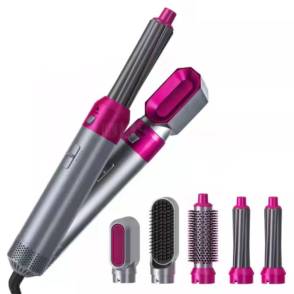 5 en 1 es un cepillo de aire que hace la función de secador de pelo y peine a la vez. Incluye 5 cabezales diferentes, haciéndole un cepillo miltifunción. Estos accesorios permiten darle a tu pelo un toque completamente diferente y se adaptan a distintos tipos y texturas de pelo: uno tiene función de cepillo alisador que hace la función de plancha de pelo, cepillo para pelo corto y voluminizador, moldeador de pelo, etc.